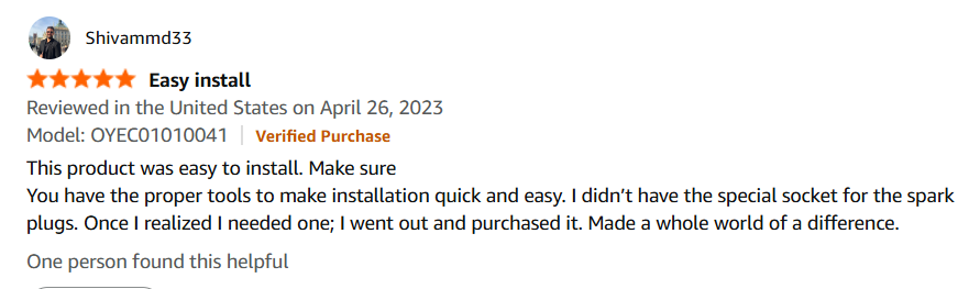 • Opt for spark plugs that are easy to install without requiring specialized tools, especially if you plan to replace them yourself.